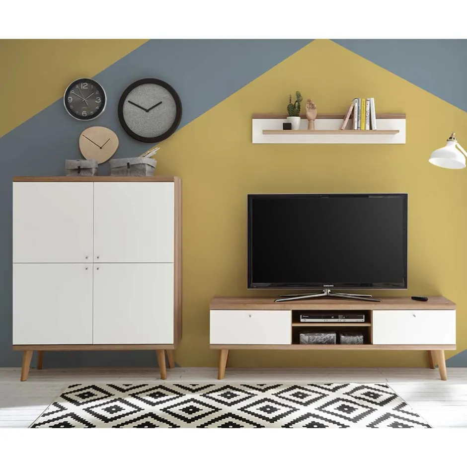 - Geschmackvolle Wohnwand in Weiß und Eichefarben