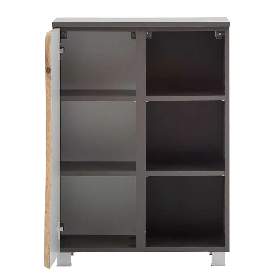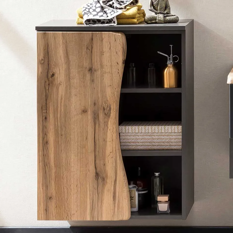 - Bad Unterschrank in Dunkelgrau und Wildeichefarben mit Baumkante