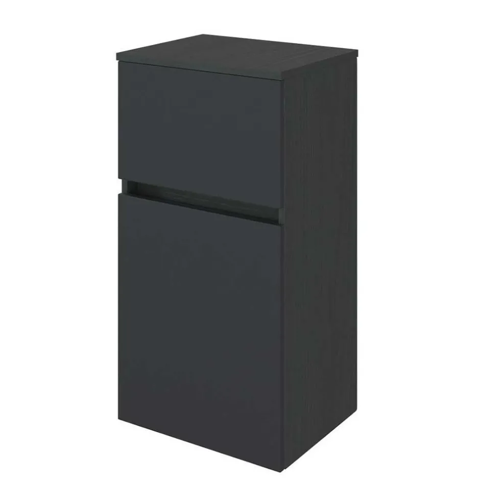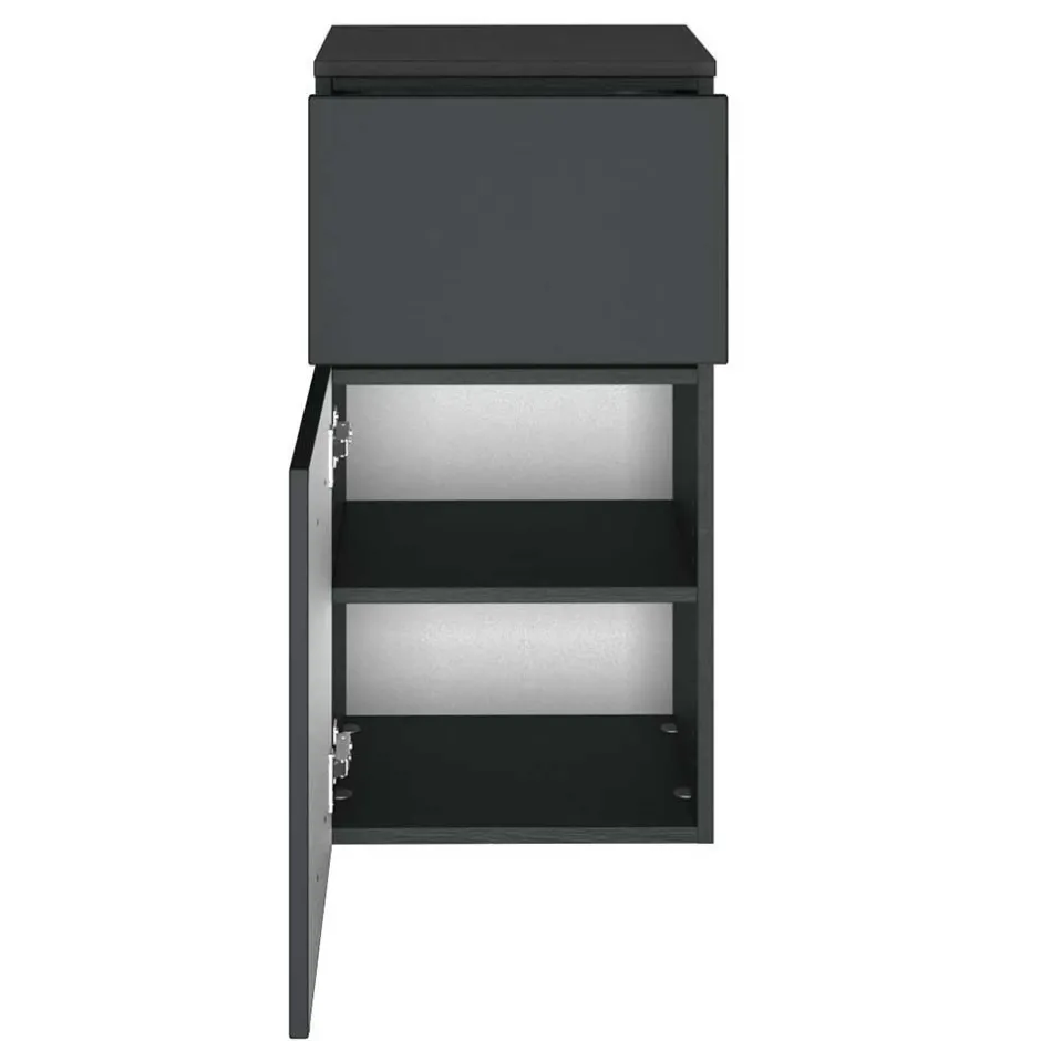 - Front in matt dunkel Grau foliert, Korpus in Dunkel Grau melaminbeschichtet, Innendekor Weiß