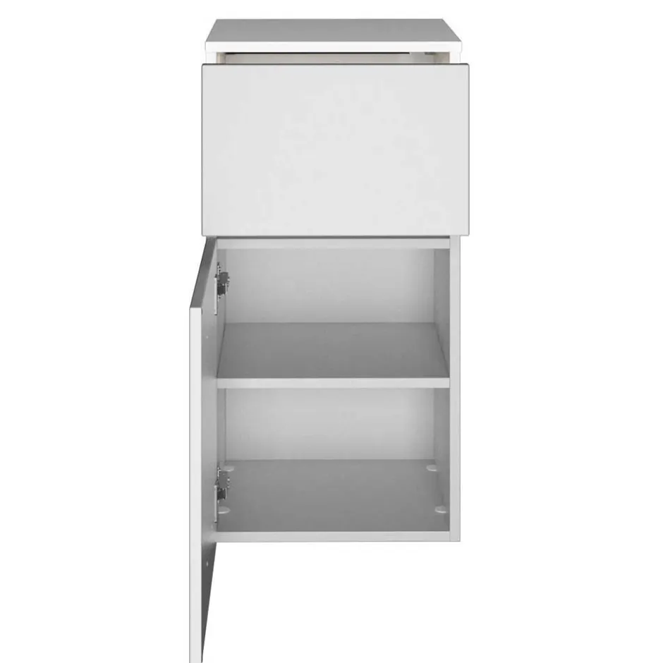 - Korpus in Weiß melaminbeschichtet, Front in matt Weiß foliert