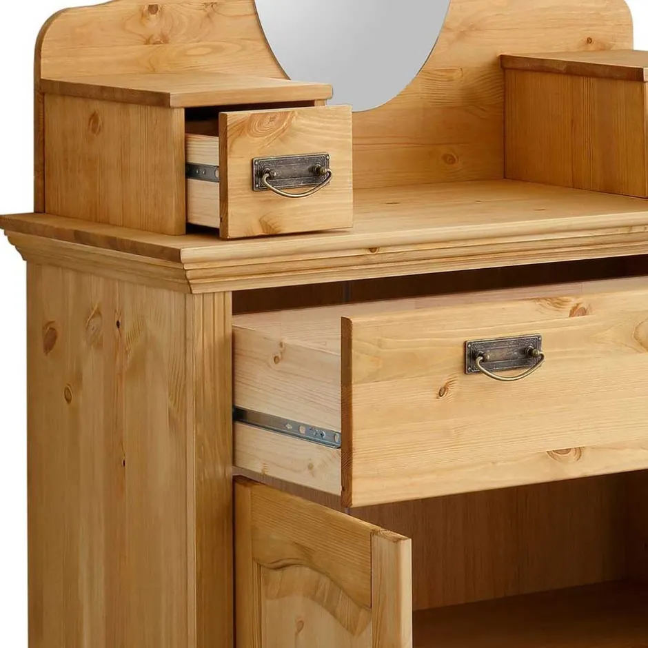 - Aus massivem Kiefernholz und Spiegelglas gefertigt