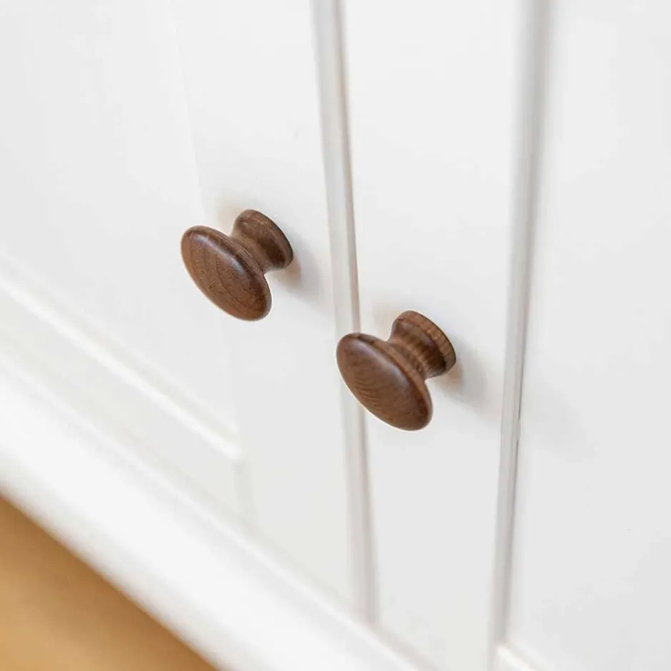 - Oberflächen weiß lackiert mit 85 % Deckkraft, Maserung leicht durchscheinend, RAL 9003, braune Elemente gebeizt und lackiert