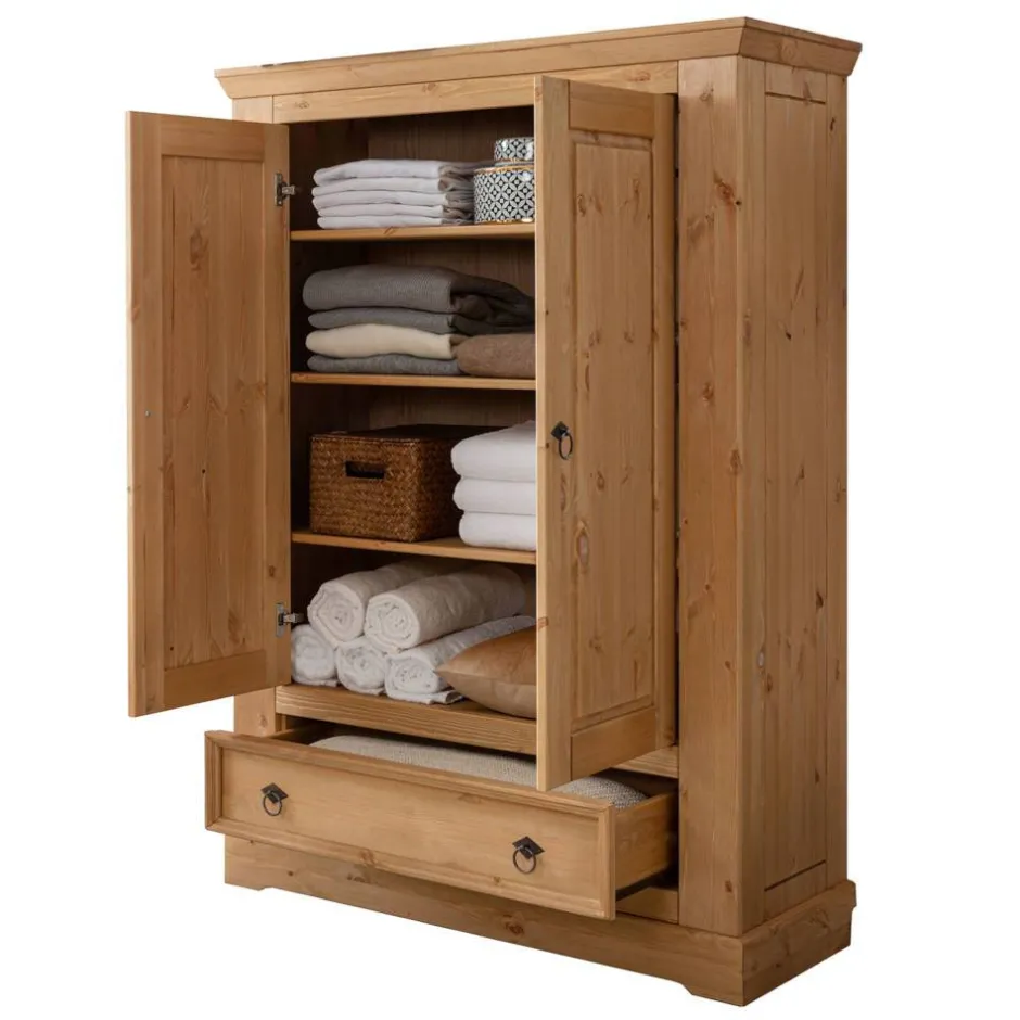 - Dekorativer Landhaus Wäscheschrank in Eichefarben