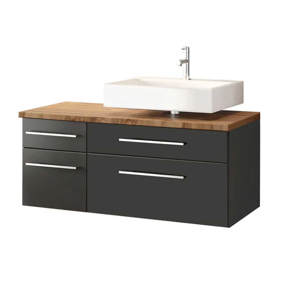 - Aktuelles Badmöbel Set in dunkel Grau und Wildeichefarben