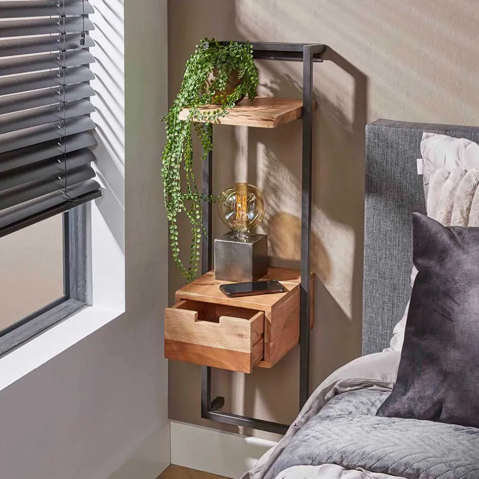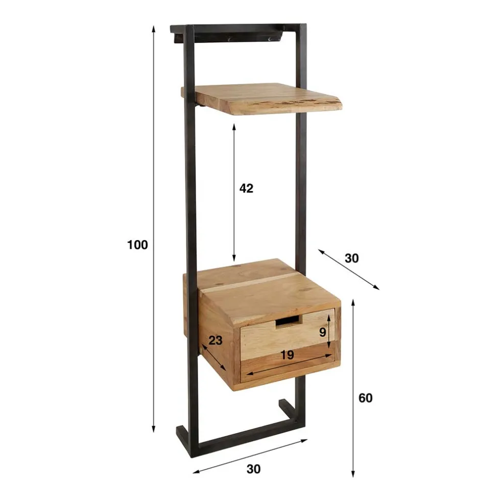 - Interessante Nachtkonsole in Akaziefarben und Schwarz