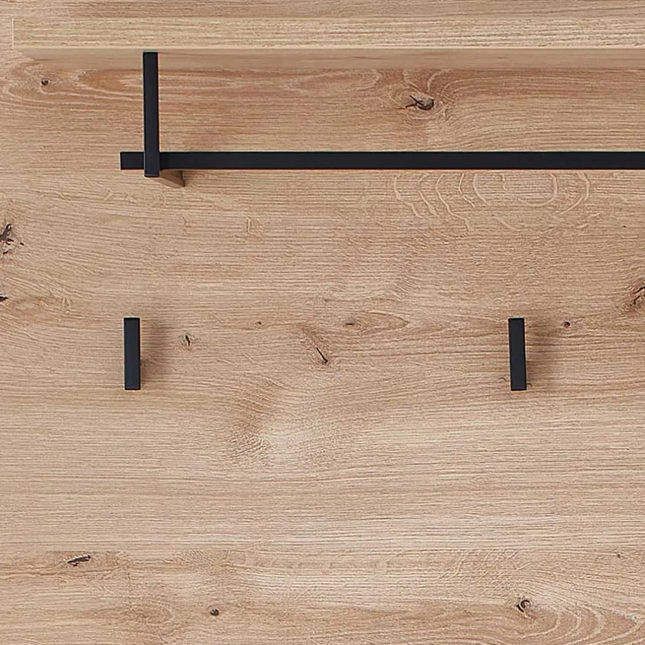 - Eine durchgehende Rückwand bietet das Garderobenpaneel