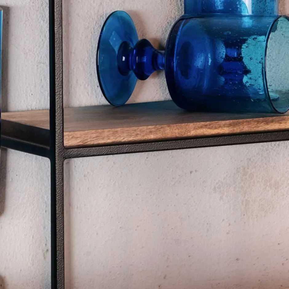 - Wandregal in warmem Mangobaum Naturfarben und klassischem Schwarz
