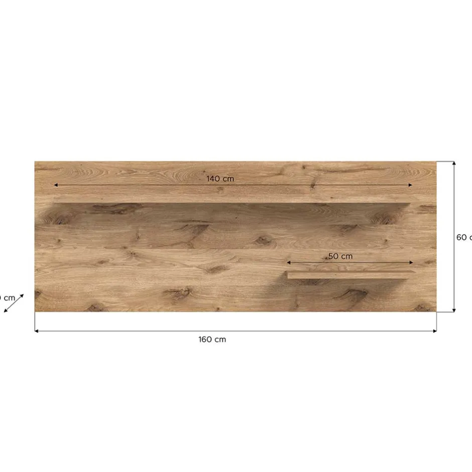 - Zwei Ablageböden mit einer Tiefe von 18,5 cm, Breite: 140 und 50 cm