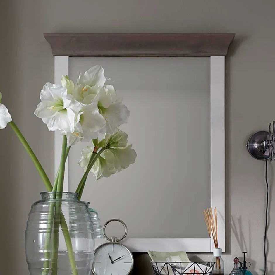 - Attraktiver Wandspiegel in Weiß mit Absetzungen in Grau