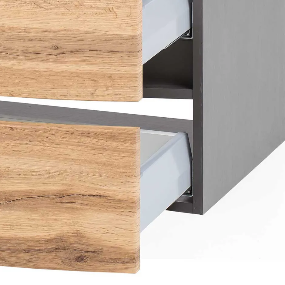 - Formschöner Waschtisch in Wildeichefarben und Dunkelgrau