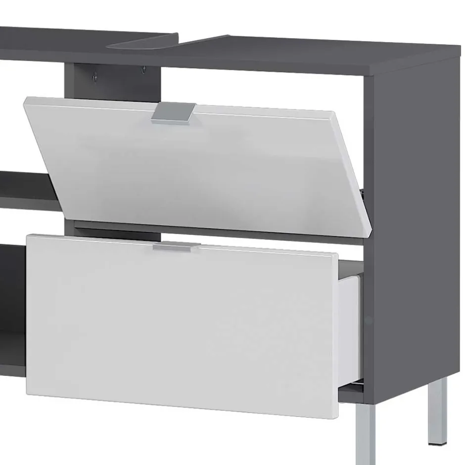 - Geräumiger Waschbeckenunterschrank in Weiß und Dunkelgrau