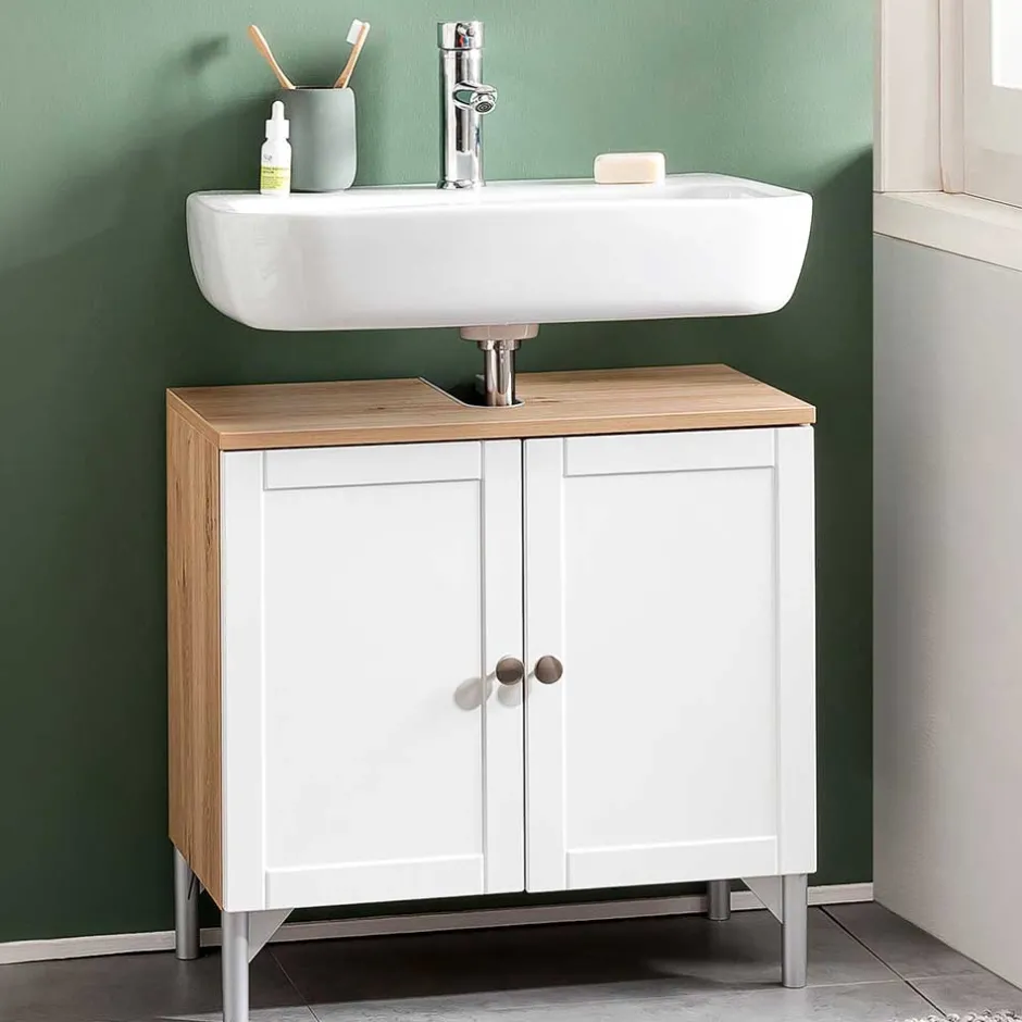 - Ansprechender Waschbeckenschrank in Weiß und Wildeichefarben