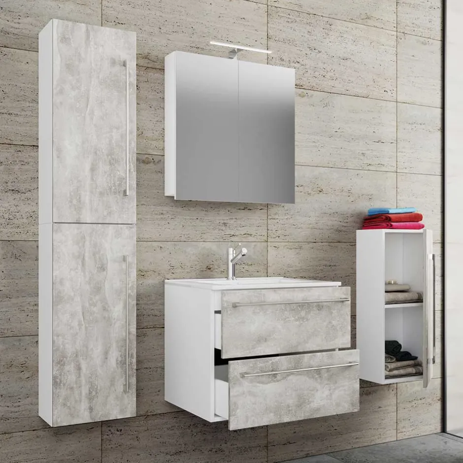 - Trendstarke Badmöbel in Beton Grau und Weiß