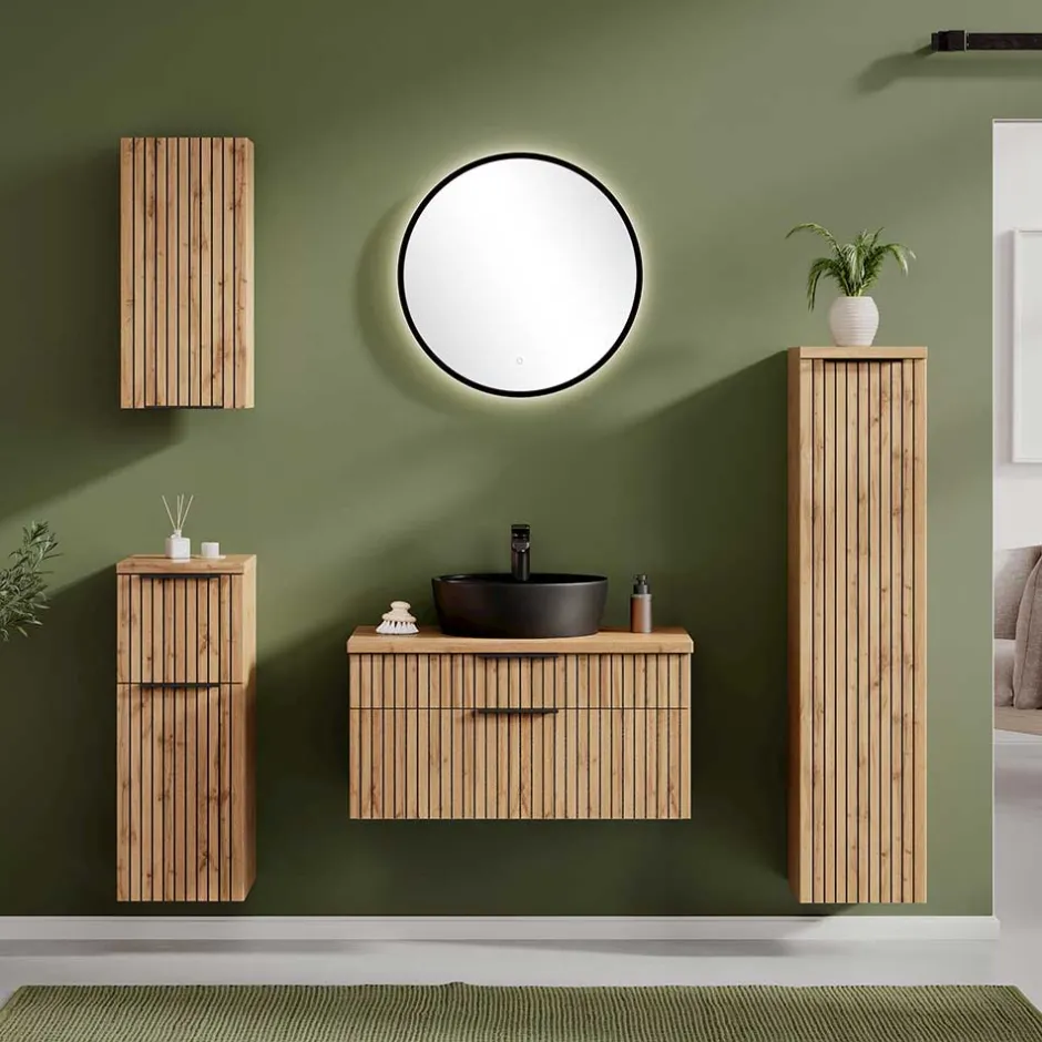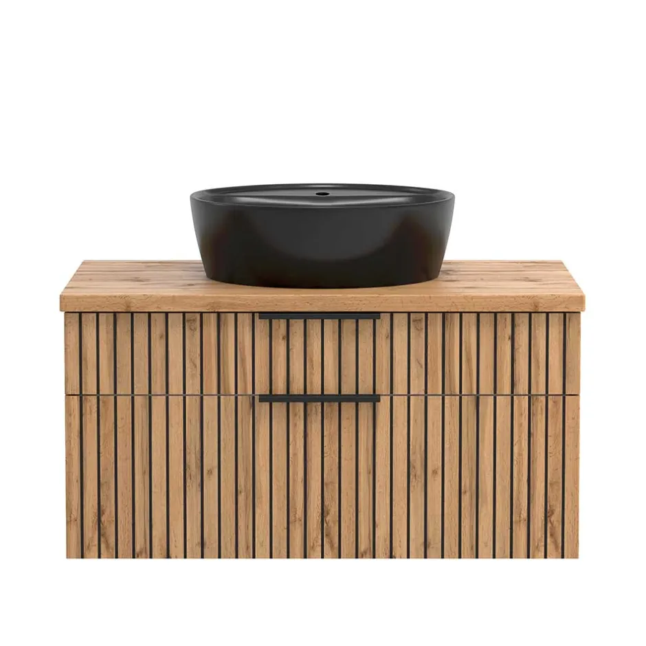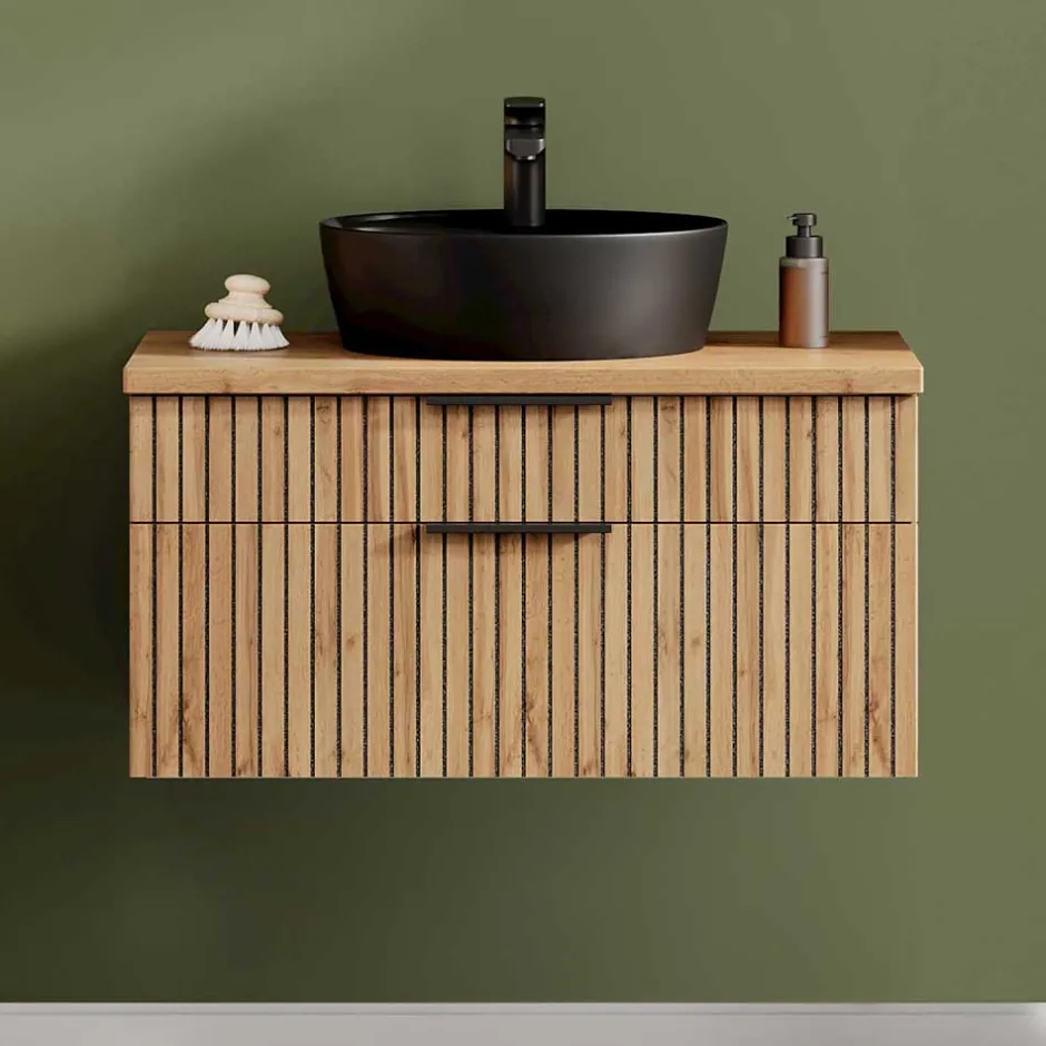 - Ansprechender Waschtisch in Wildeichefarben und Schwarz