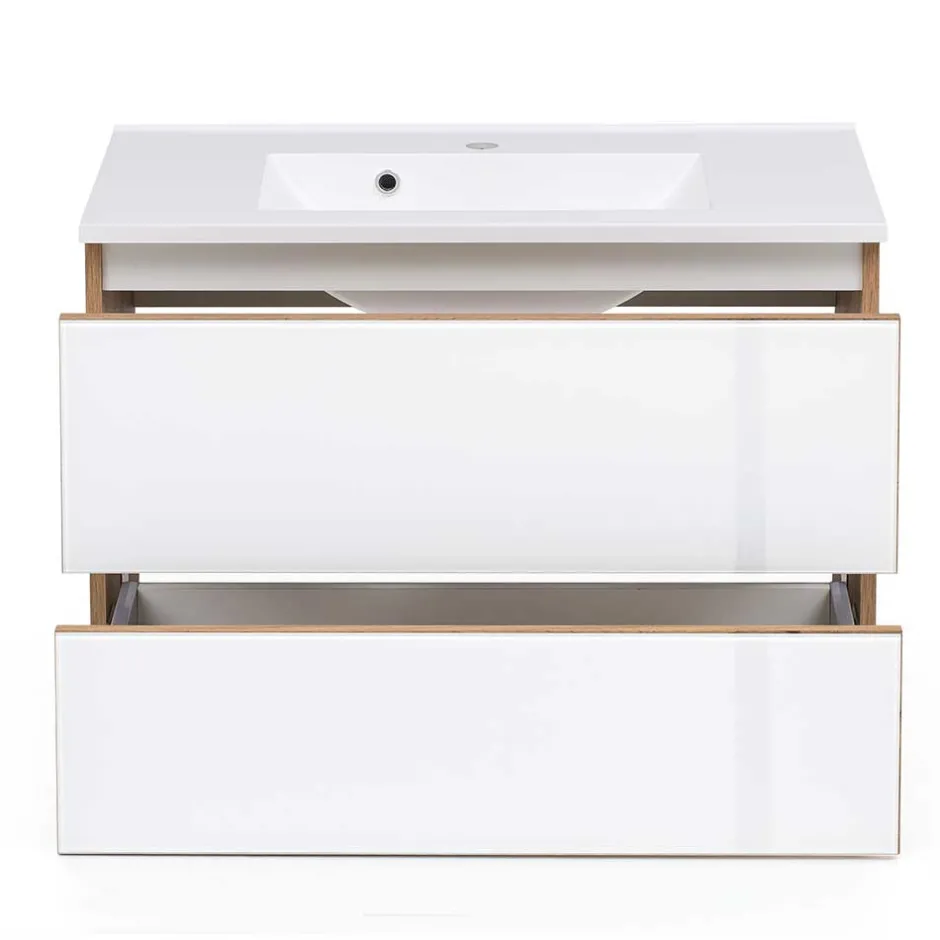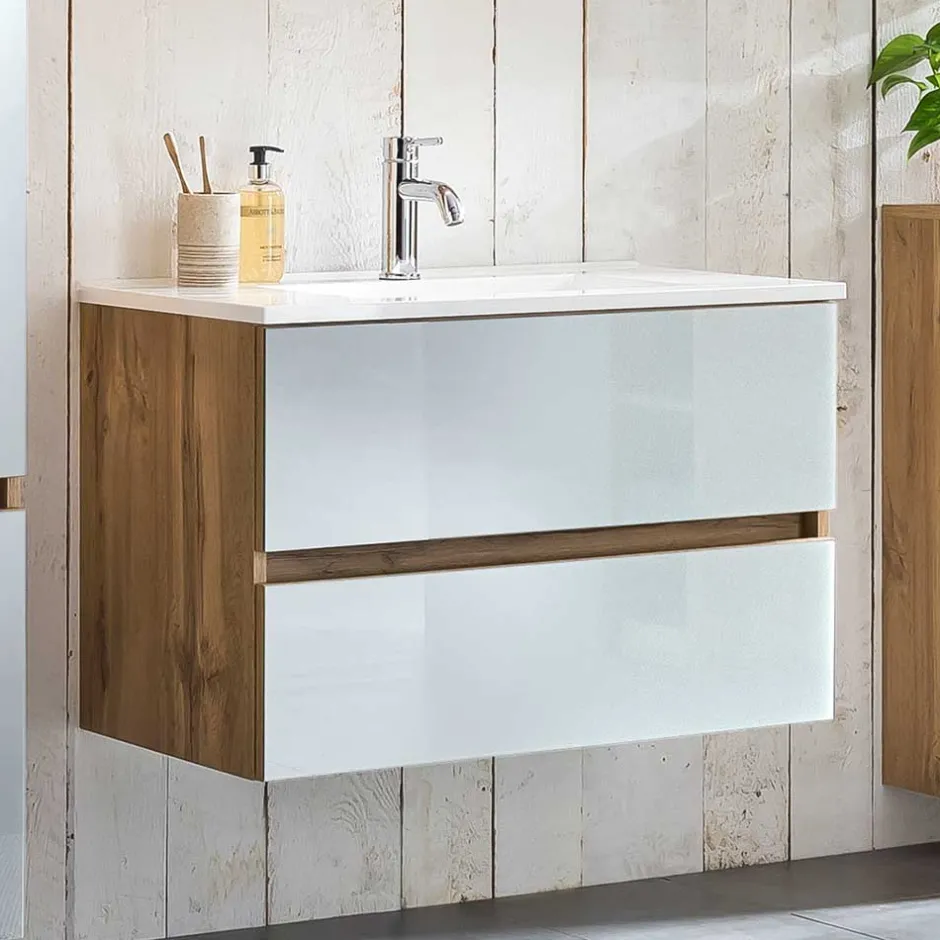 - Erstklassiger Waschtisch in Weiß und Wildeichefarben
