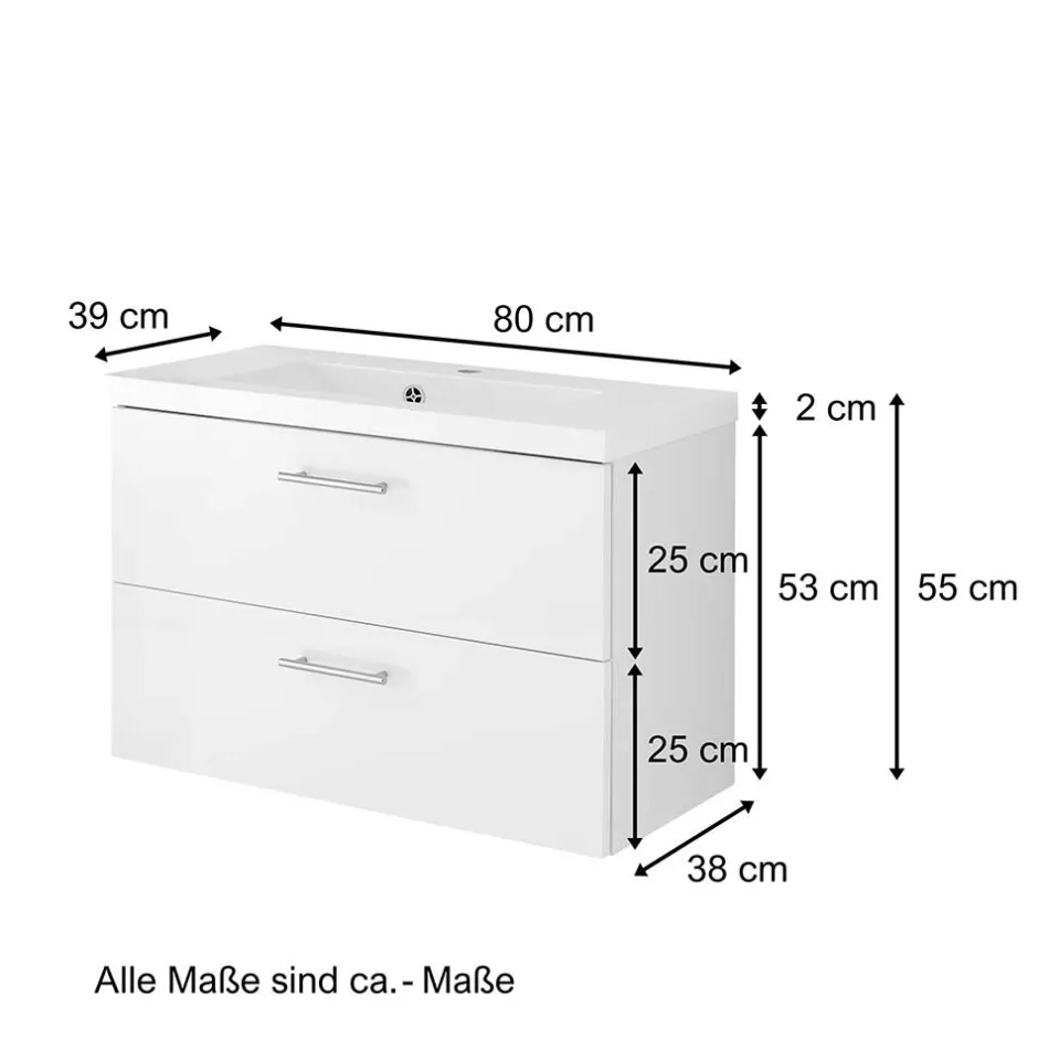 - Aus Spanplatte (Korpus) und MDF (Front) gefertigt
