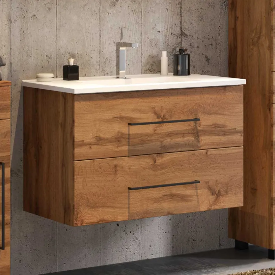 - Pflegeleichte Oberfläche im Holzdekor Wildeiche, Korpus melaminbeschichtet, Front foliert