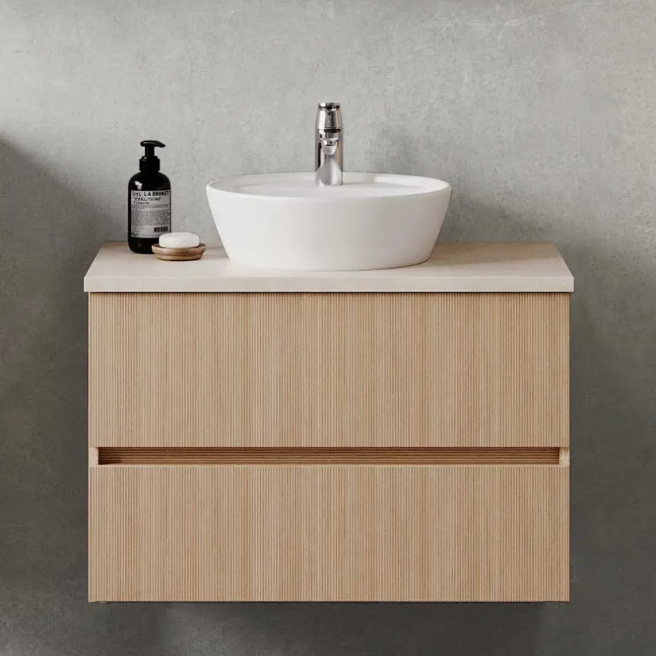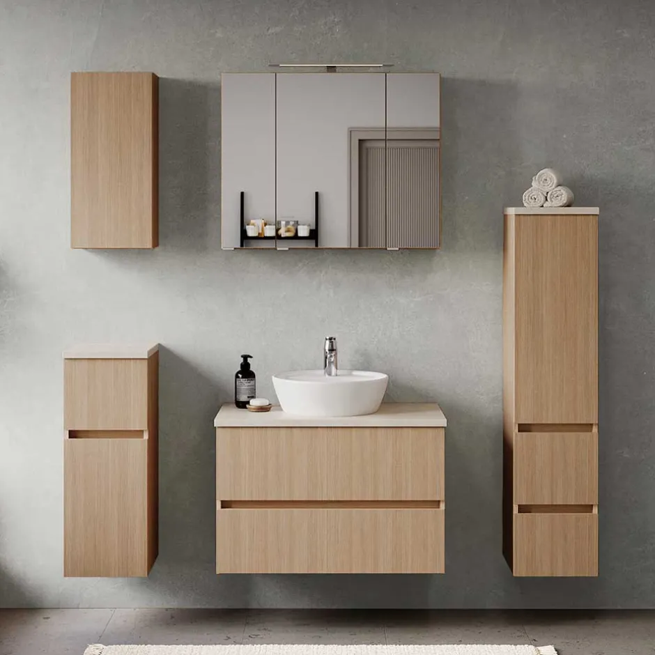 - Erstklassiger Waschtischschrank in Eiche hell und Beige