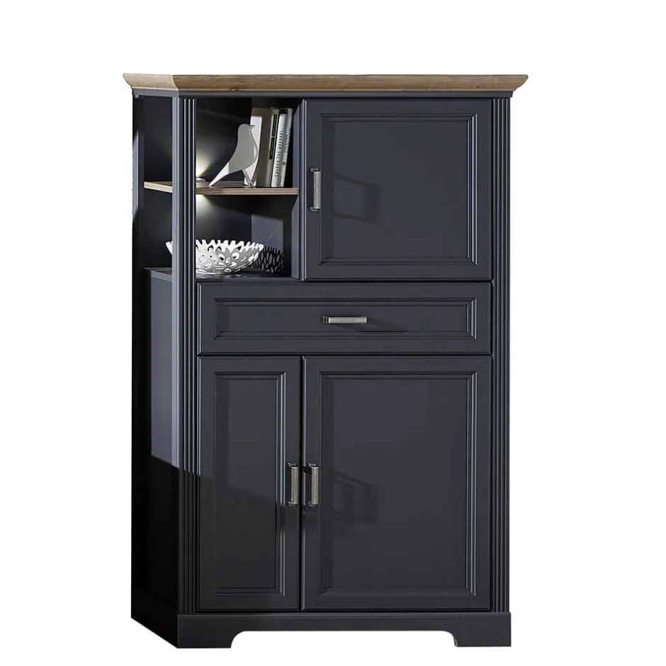 - Erstklassige Wohnwand in Dunkelgrau und Eichefarben