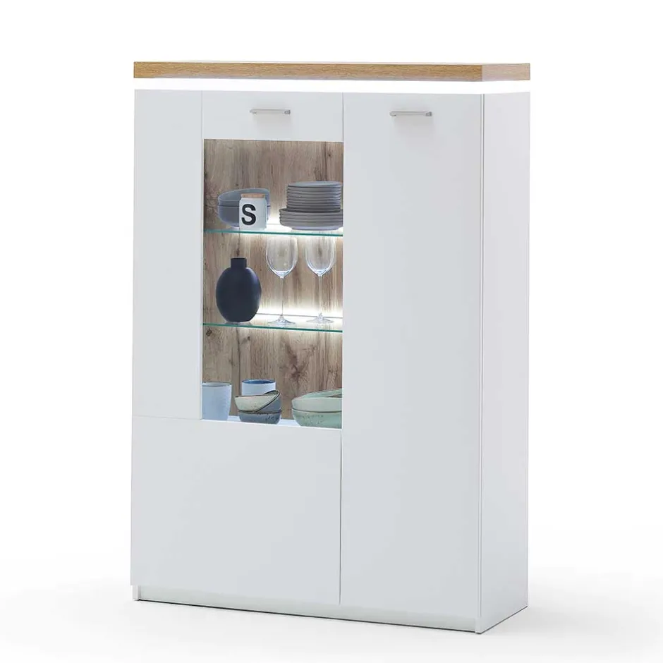 - Elegante Highboard-Vitrine in Weiß und WIldeichefarben