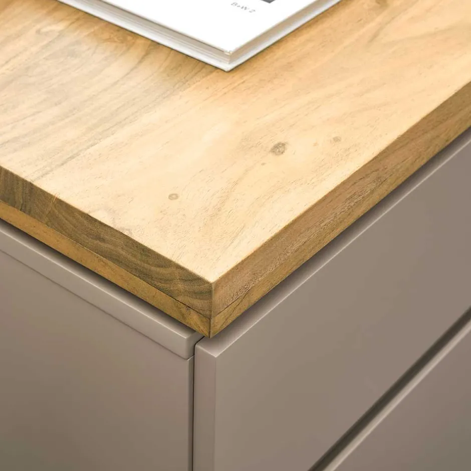 - Attraktive Kommode in Taupe und Akaziefarben