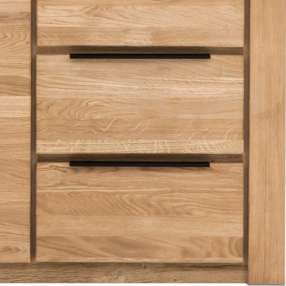 - Gefertigt aus massivem Eichenholz (Fronten) und Spanplatte (Korpus, Böden)