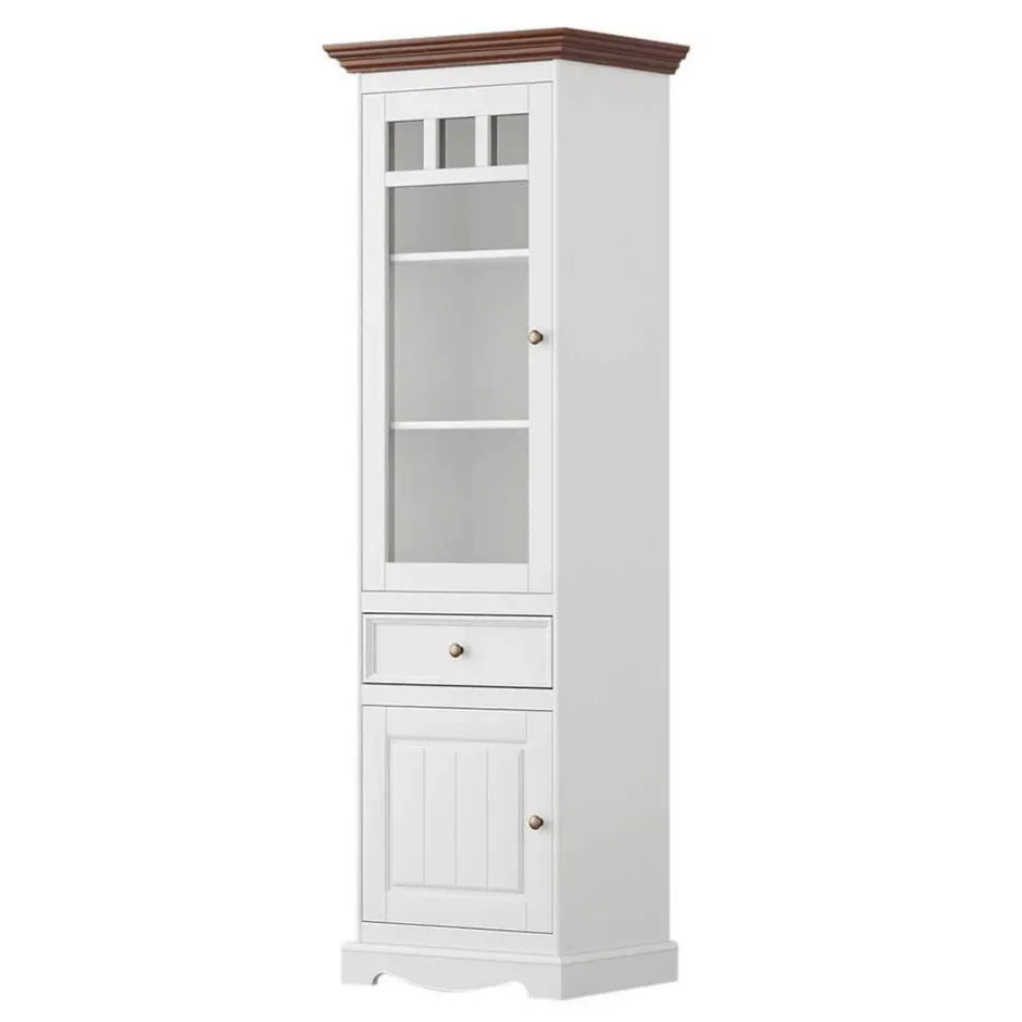 - Schicke Vitrine in Weiß und Nussbaumfarben