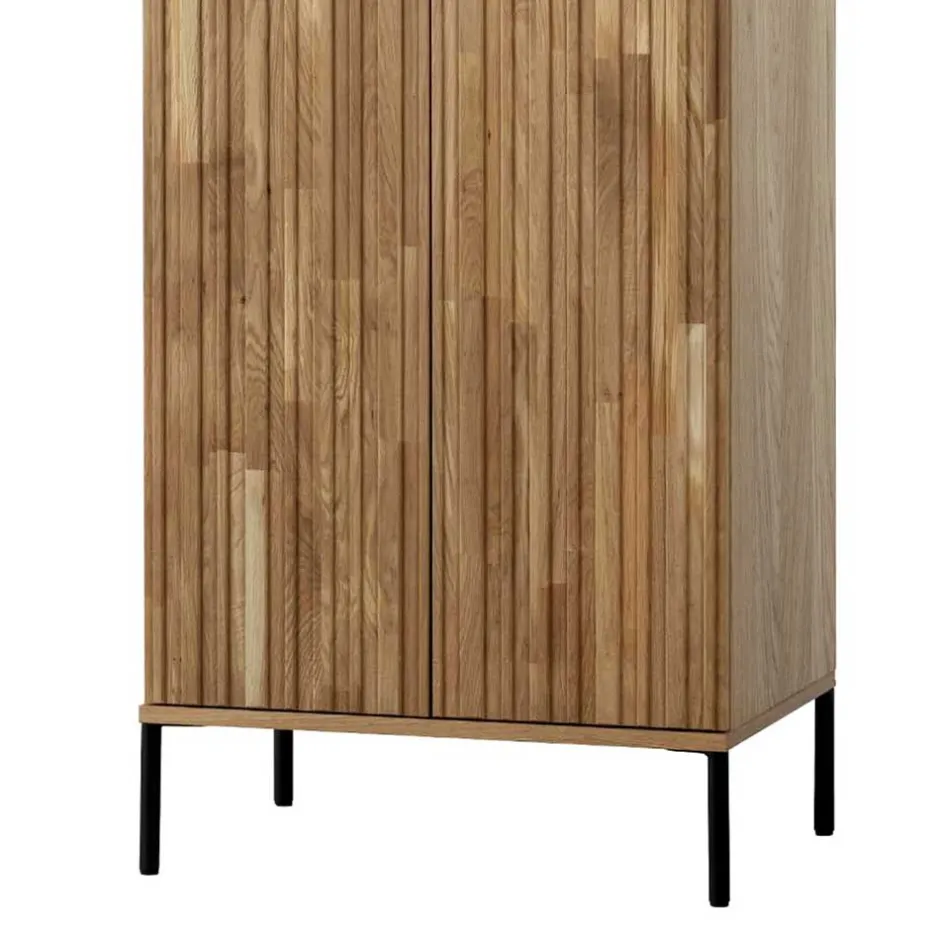 - Aus Spanplatte (Korpus, Inneneinteilung), Massivholz (Front) und Metall hergestellt