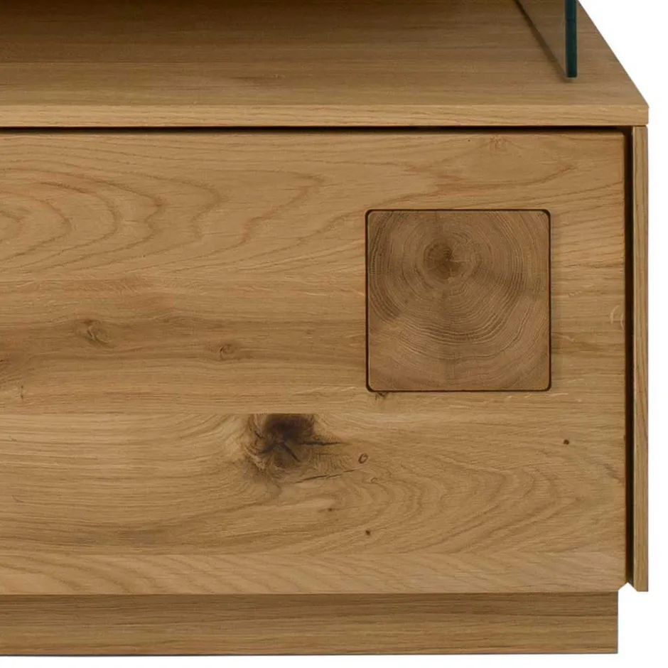 - Rückwände aus Holzwerkstoff, sichtbare Flächen mit Eiche echtholzfurniert und sandgestrahlt