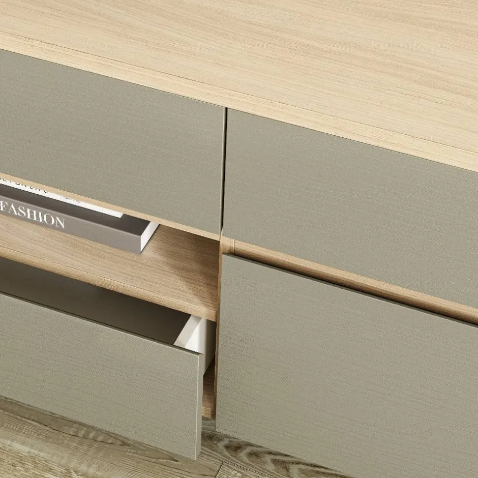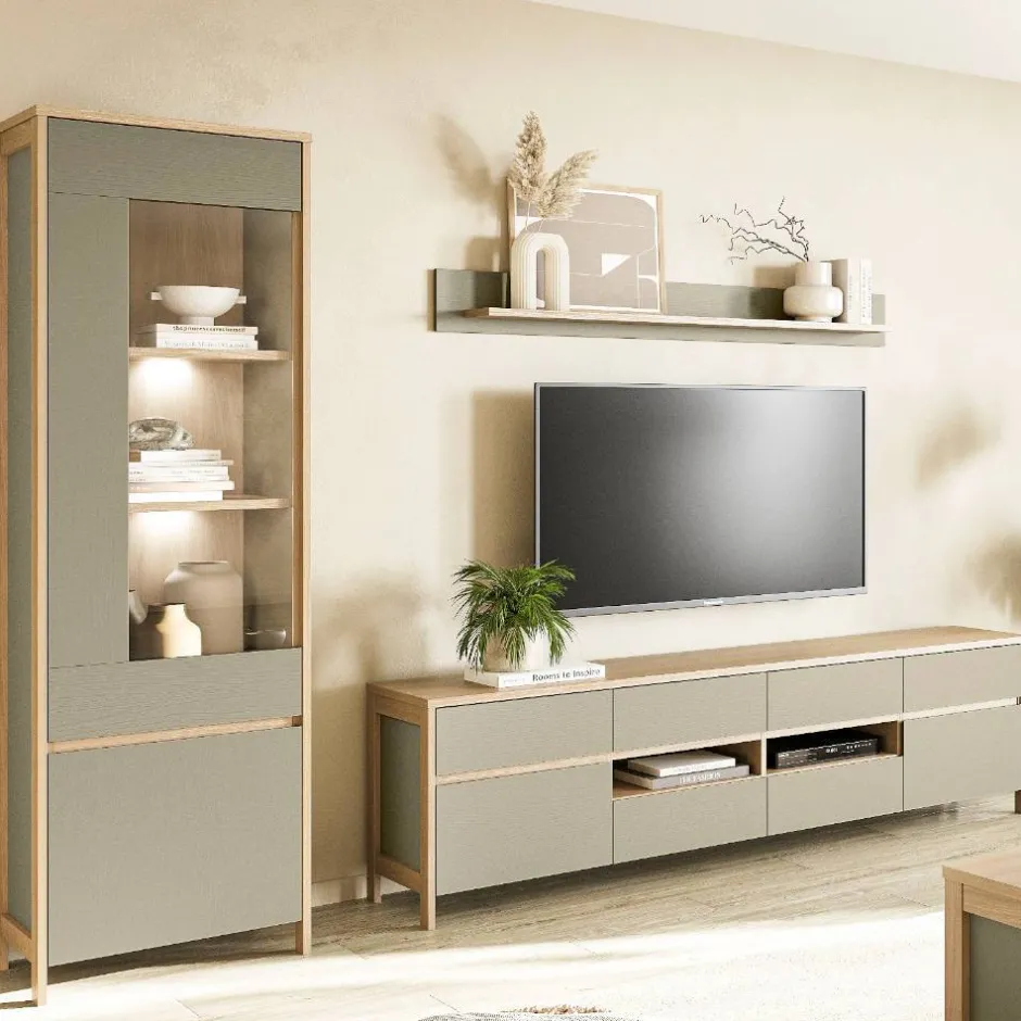 - Aktuelle Wohnwand in Eukalyptus- und Eichefarben