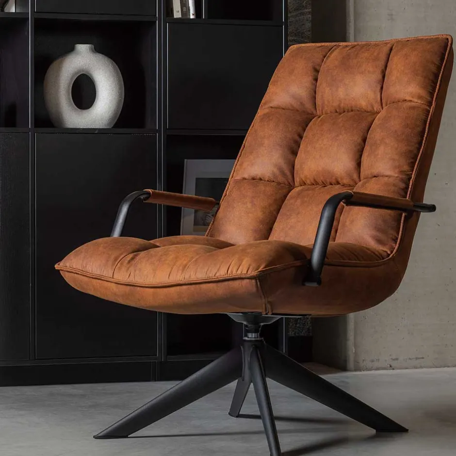 - Gemütlicher Lounge Sessel in Cognac Braun und Schwarz