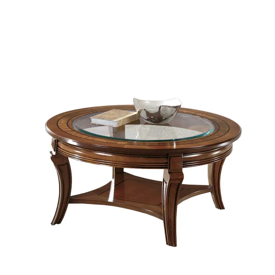 - Tischplatte mit transparenter Glaseinlage gestaltet