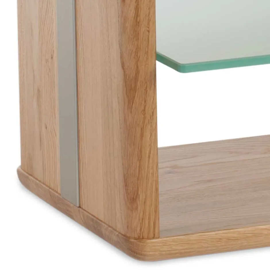 - Aus Wildeiche Massivholz und Glas hergestellt