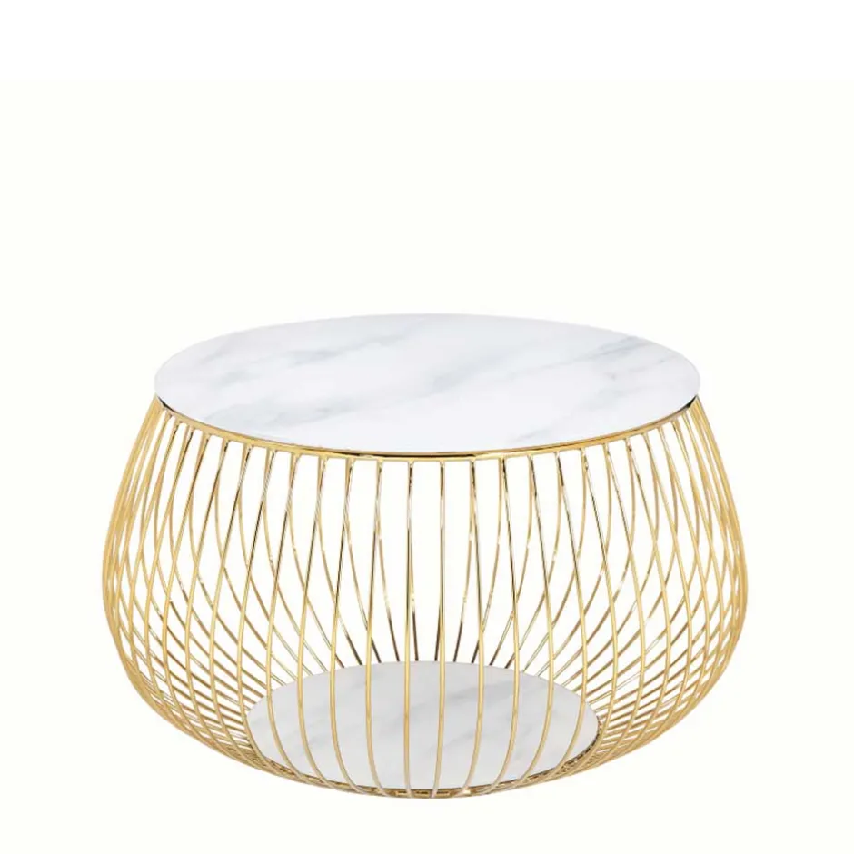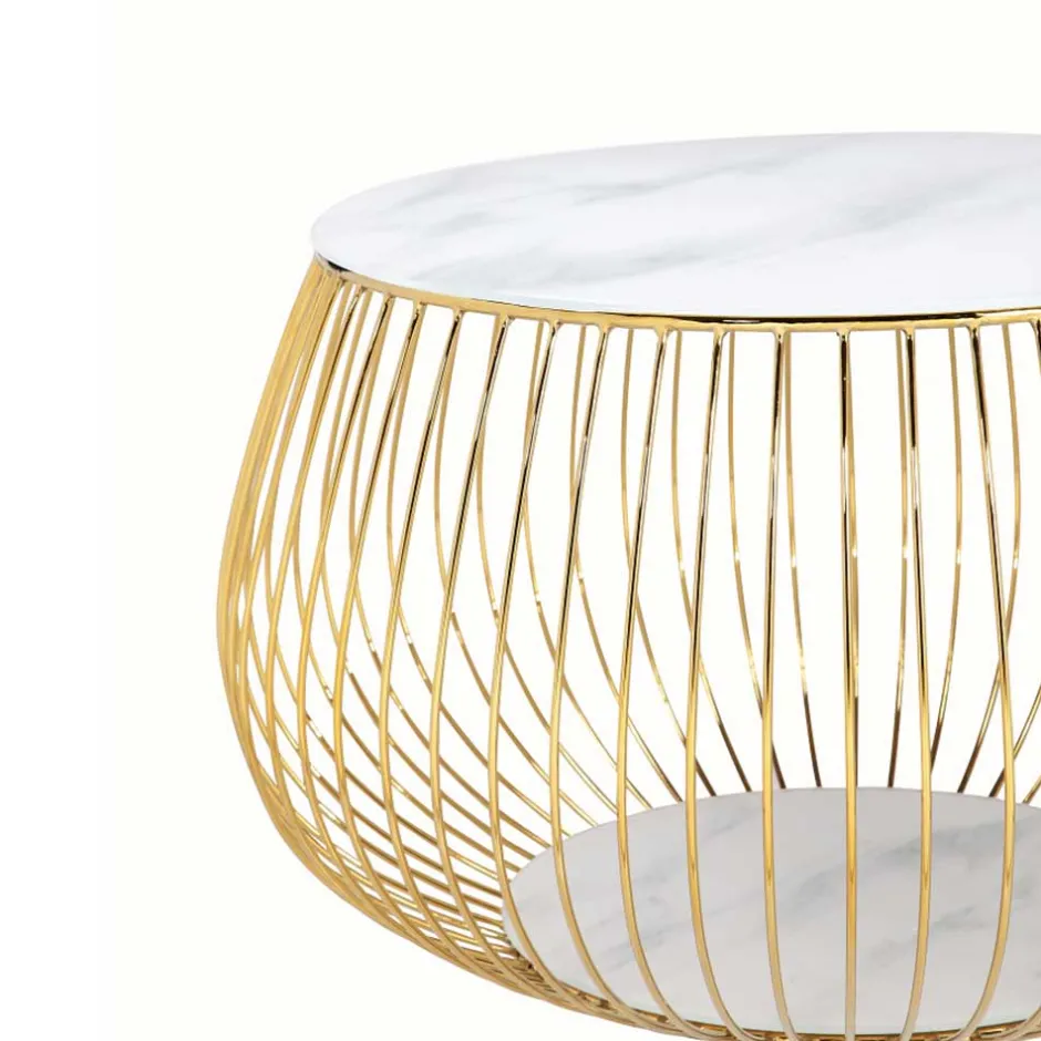 - Eleganter Couchtisch in Weiß, Hellgrau und Goldfarben