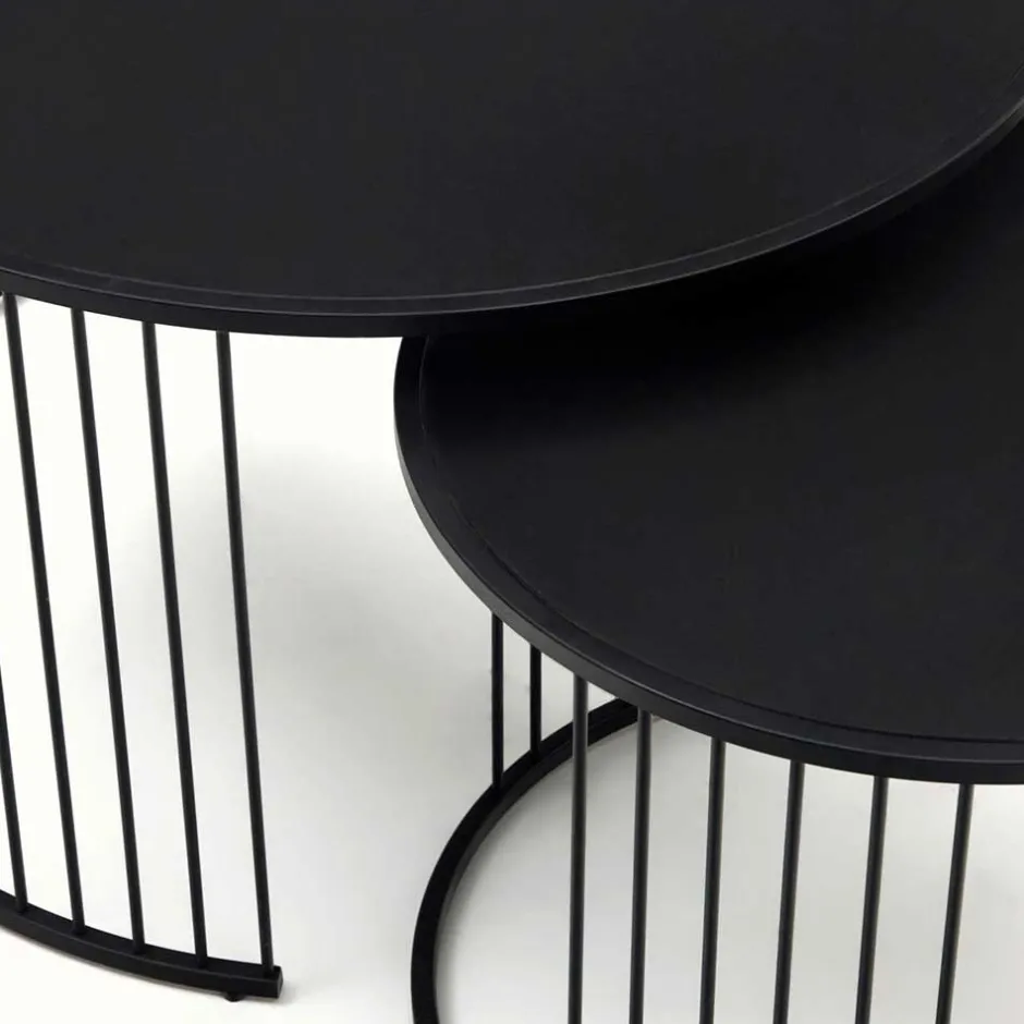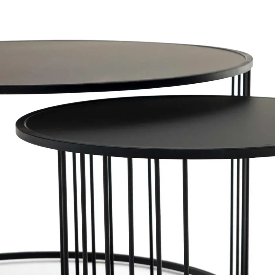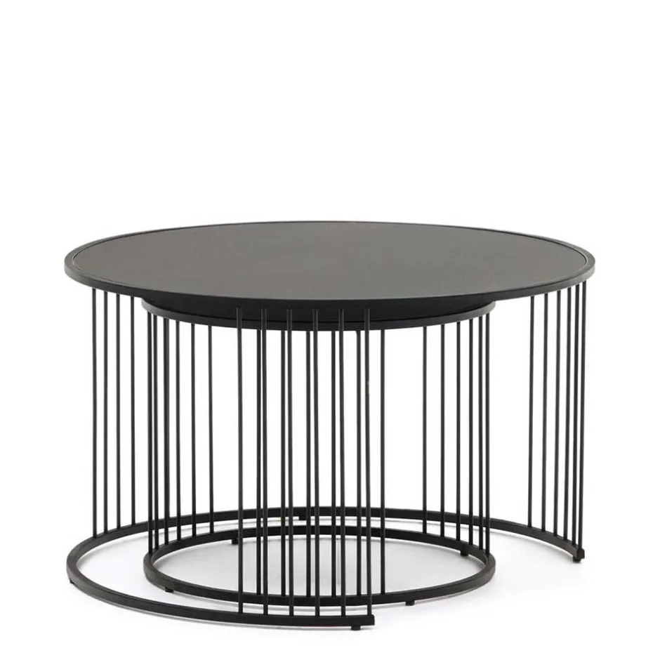 - Dekorative Ringgestelle aus Stahl, der größere Tisch teils offen
