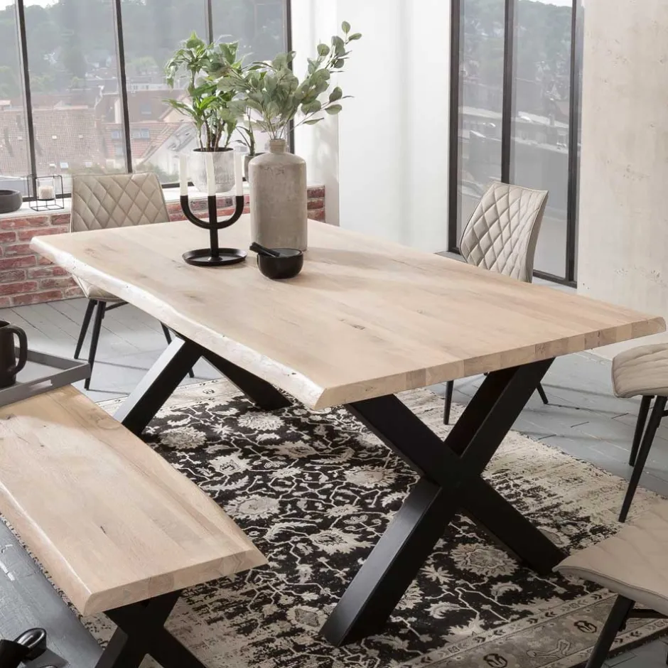 - XXL Esstisch in Wildeiche White Wash und Schwarz