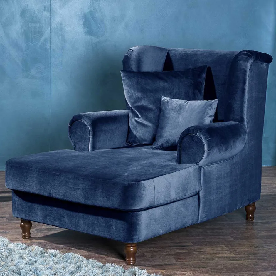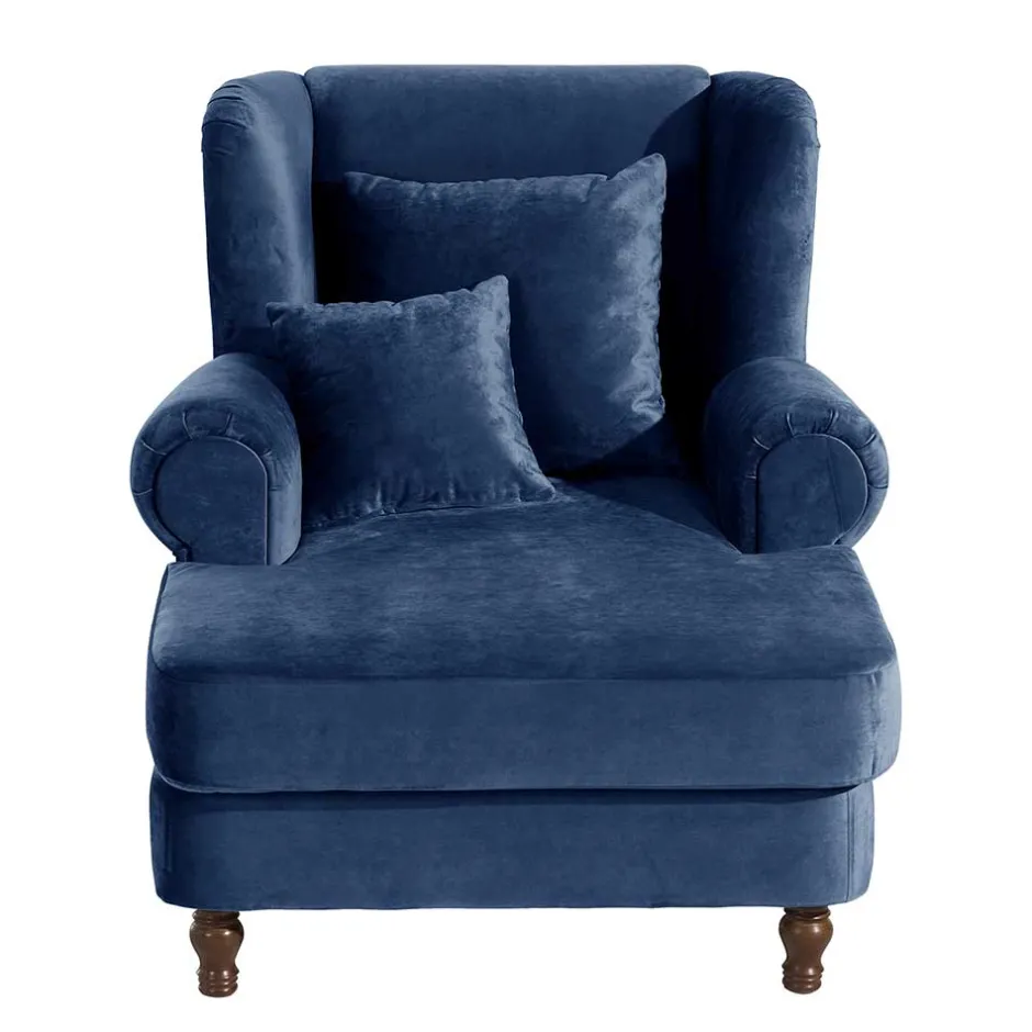 - Trendiger Big Sessel in Dunkelblau und Nussbaumfarben