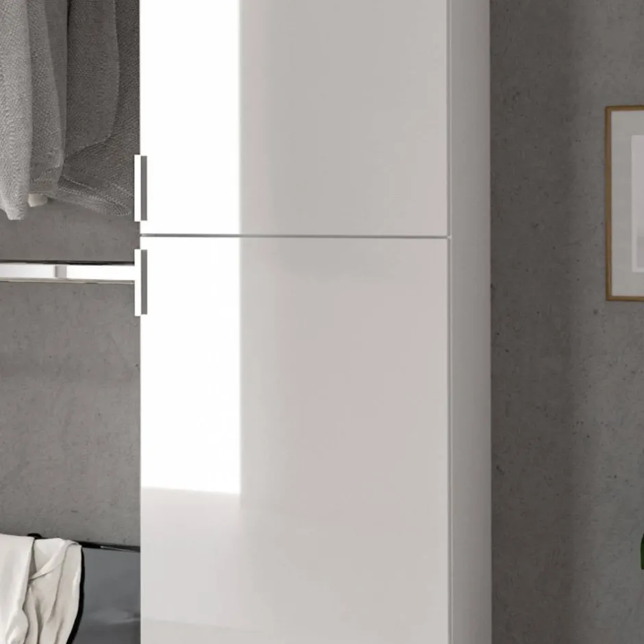 - Vier Türen, innen eine ausziehbare Kleiderstange und acht Böden