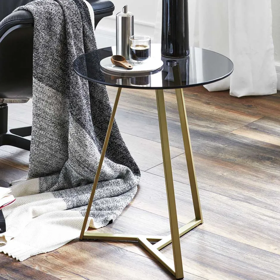 - Zierlicher Beistelltisch in Grau und Goldfarben