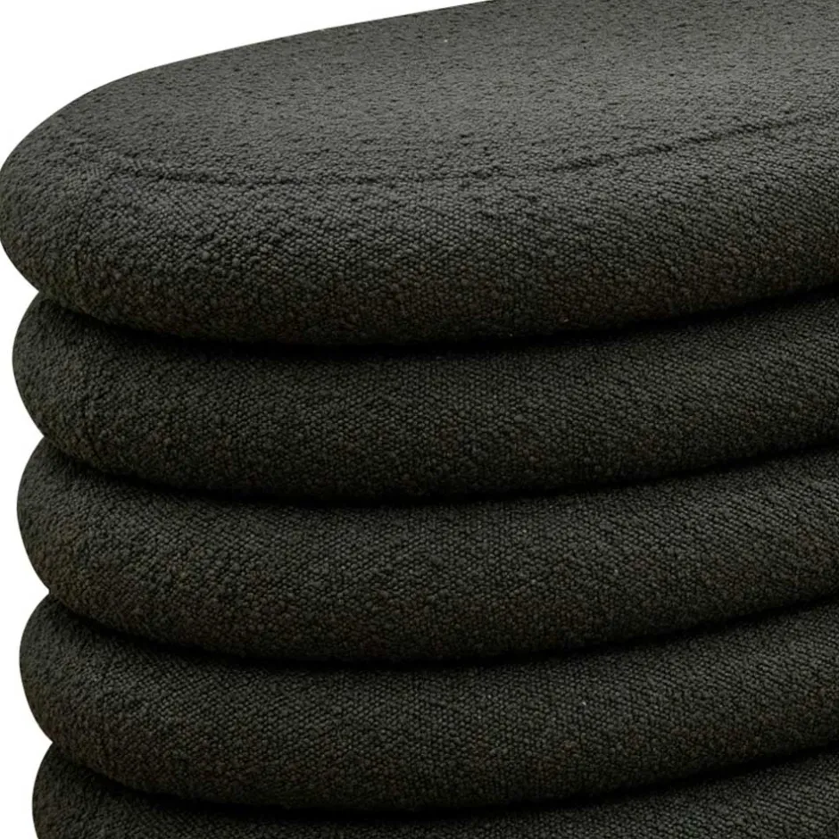 - Aus Boucle und einem Untergestell aus Spanplatte gefertigt