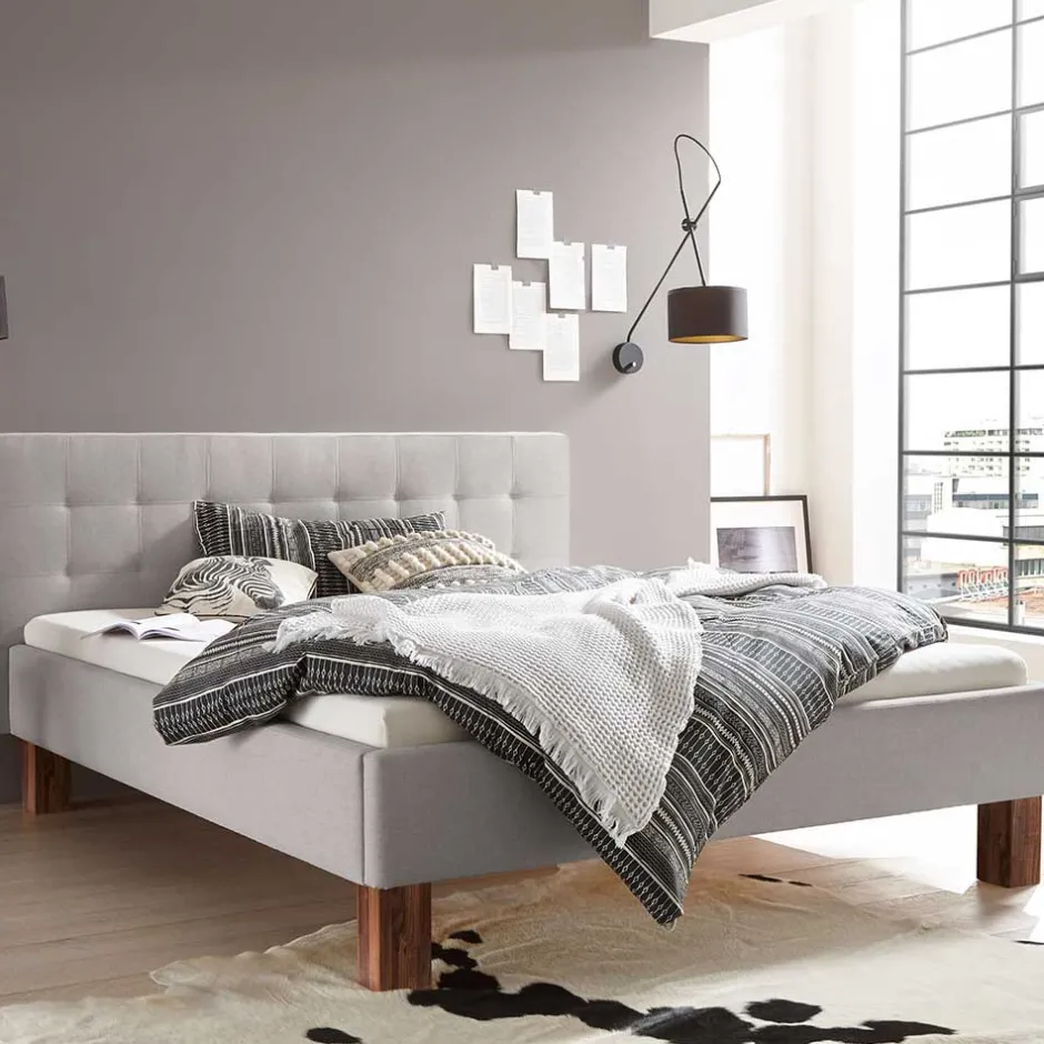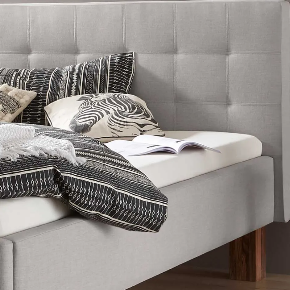 - Traumhaftes Polsterbett in Grau und Nussbaumfarben
