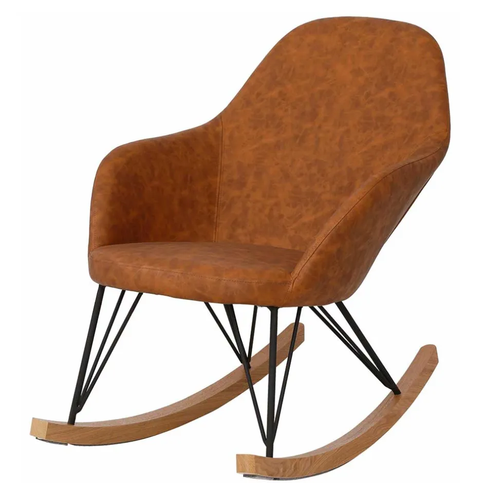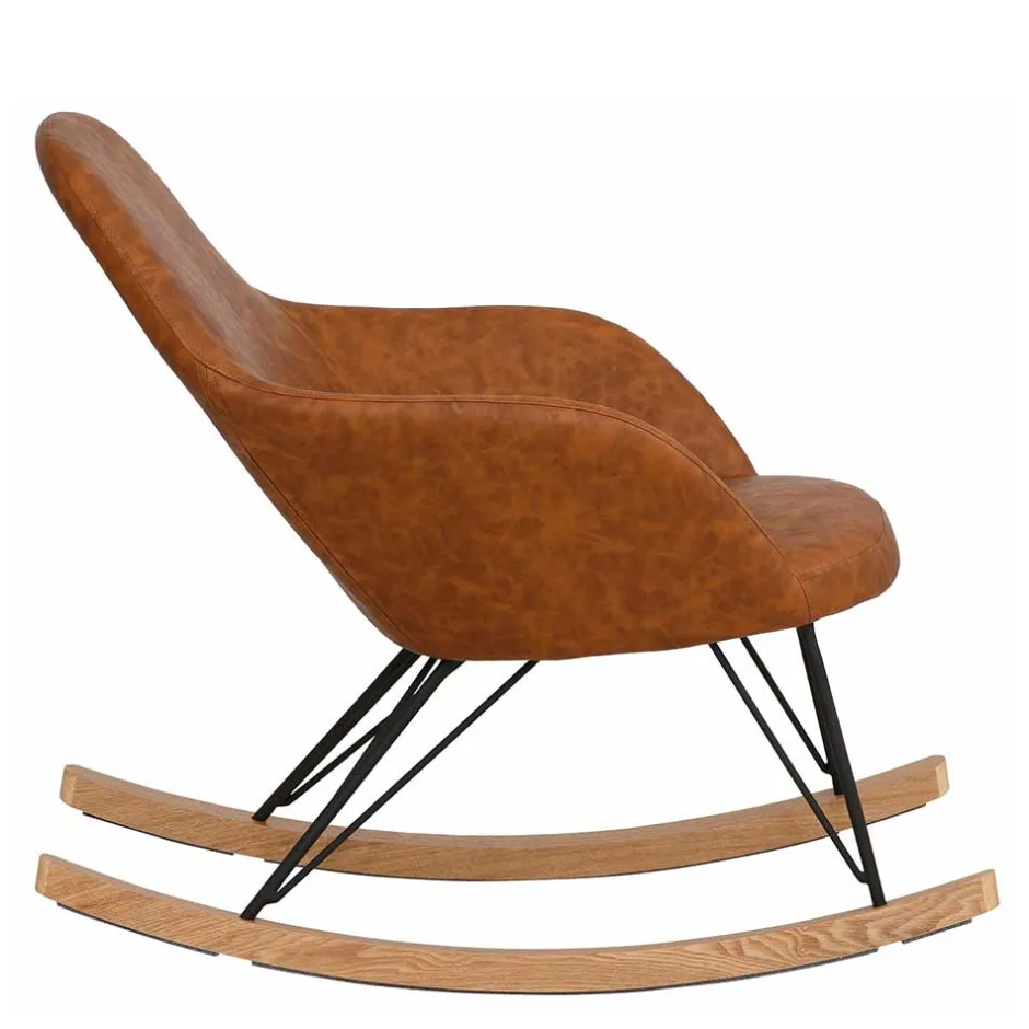 - Attraktiver Schaukelsessel in Cognac Braun und Eichefarben
