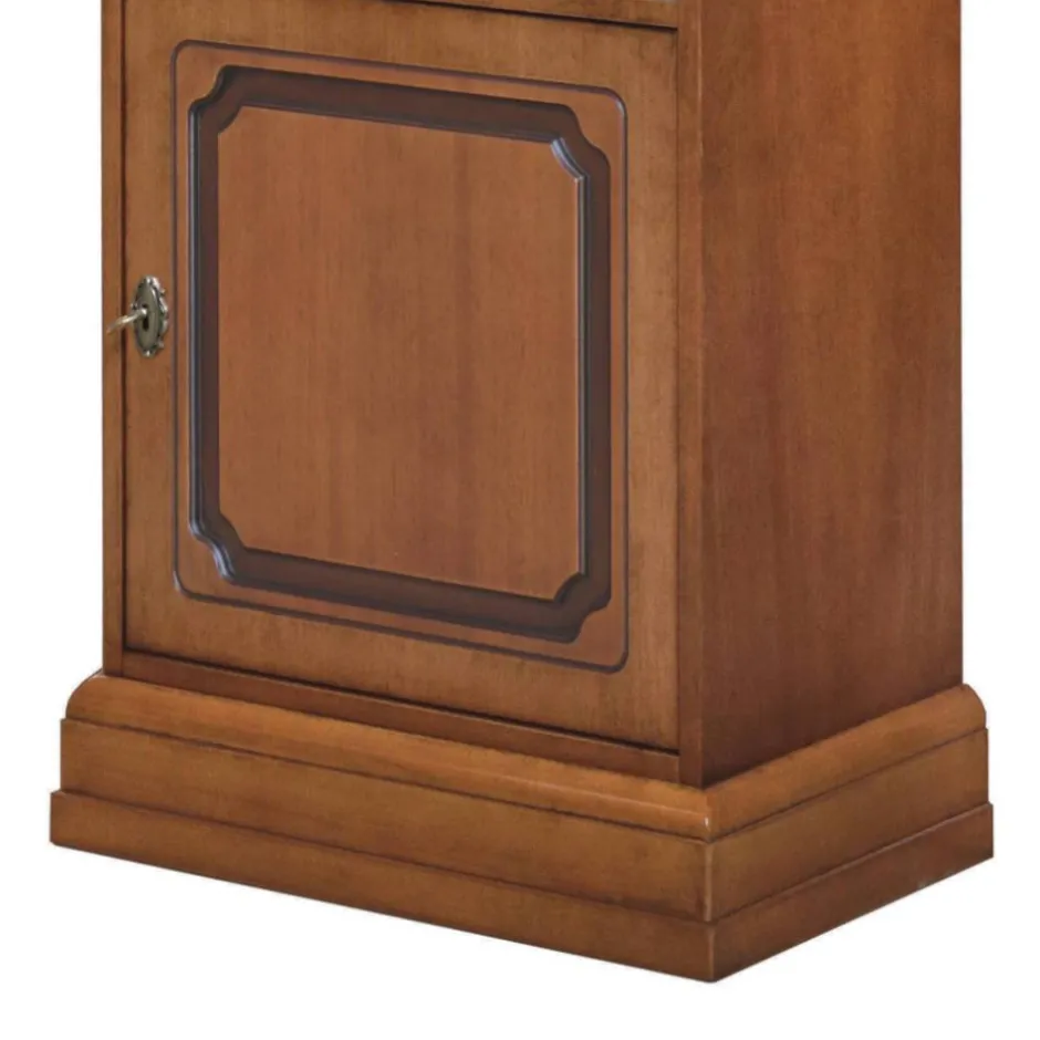 - Unten befindet sich eine Tür mit Metallbeschlägen, innen ein verstellbarer Einlegeboden