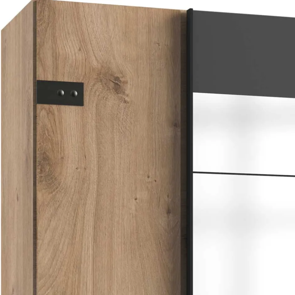 - Markanter Kleiderschrank in Plankeneiche Holzoptik und Dunkelgrau