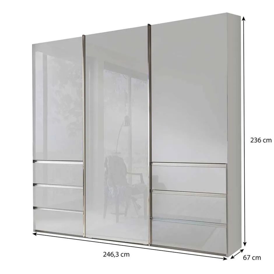 - Oberfläche der Front mit Glas beschichtet, Korpus foliert, Innendekor Silber-Grau gestreift