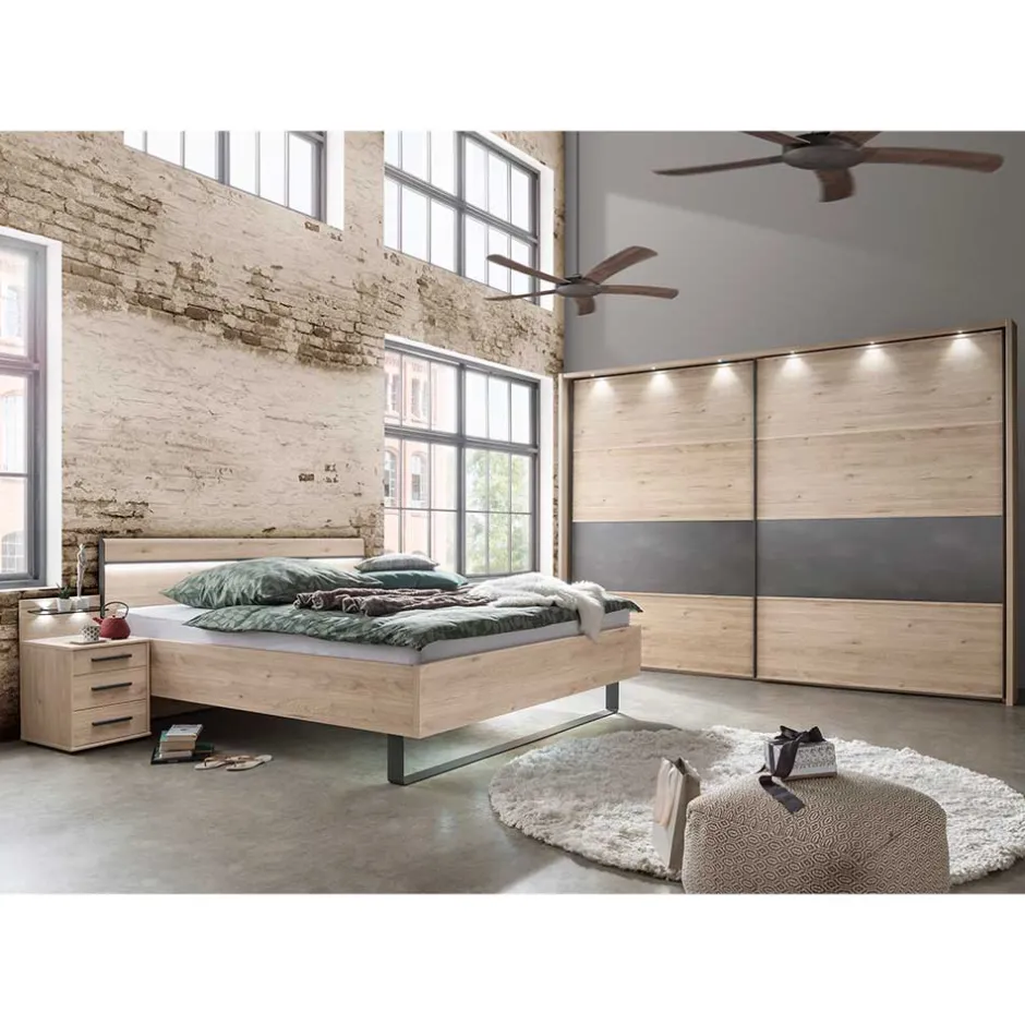 - Faszinierendes Schlafzimmer Set in Eichefarben und Dunkelgrau