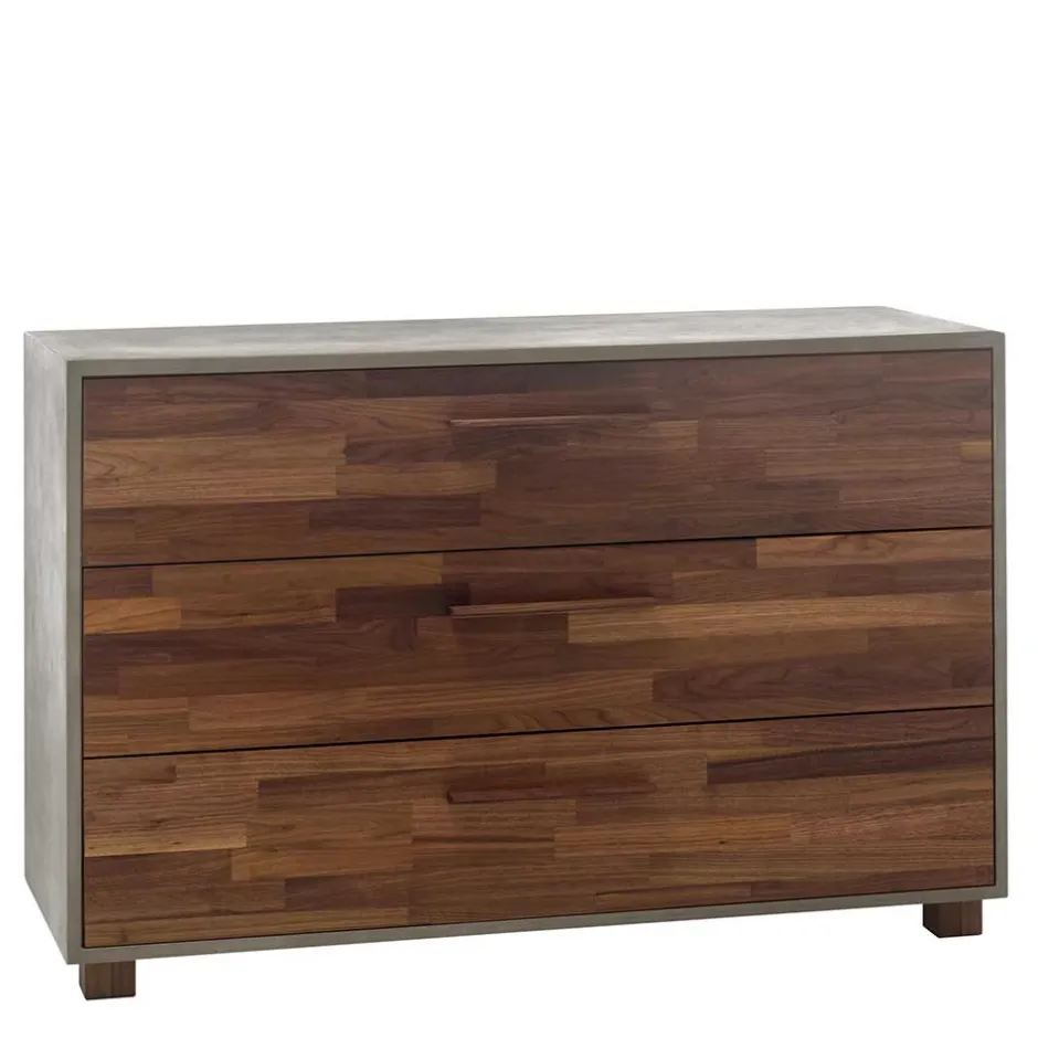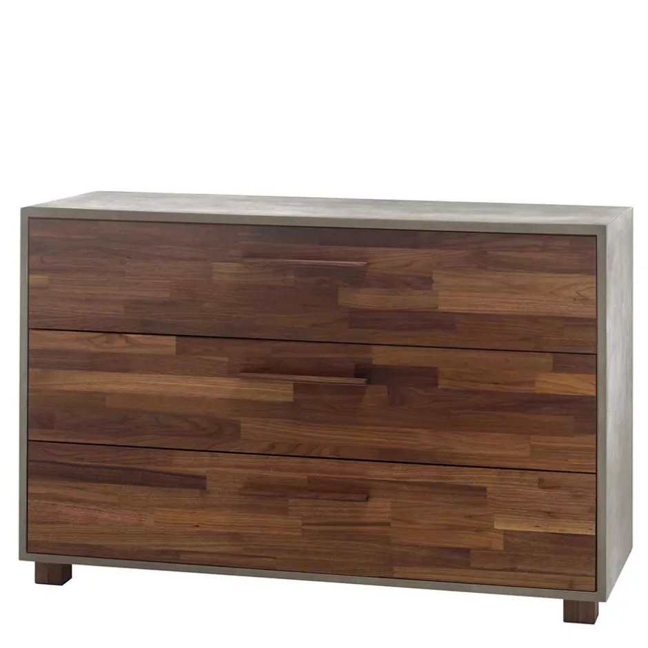 - Trendige Kommode in Beton Grau und Nussbaumfarben