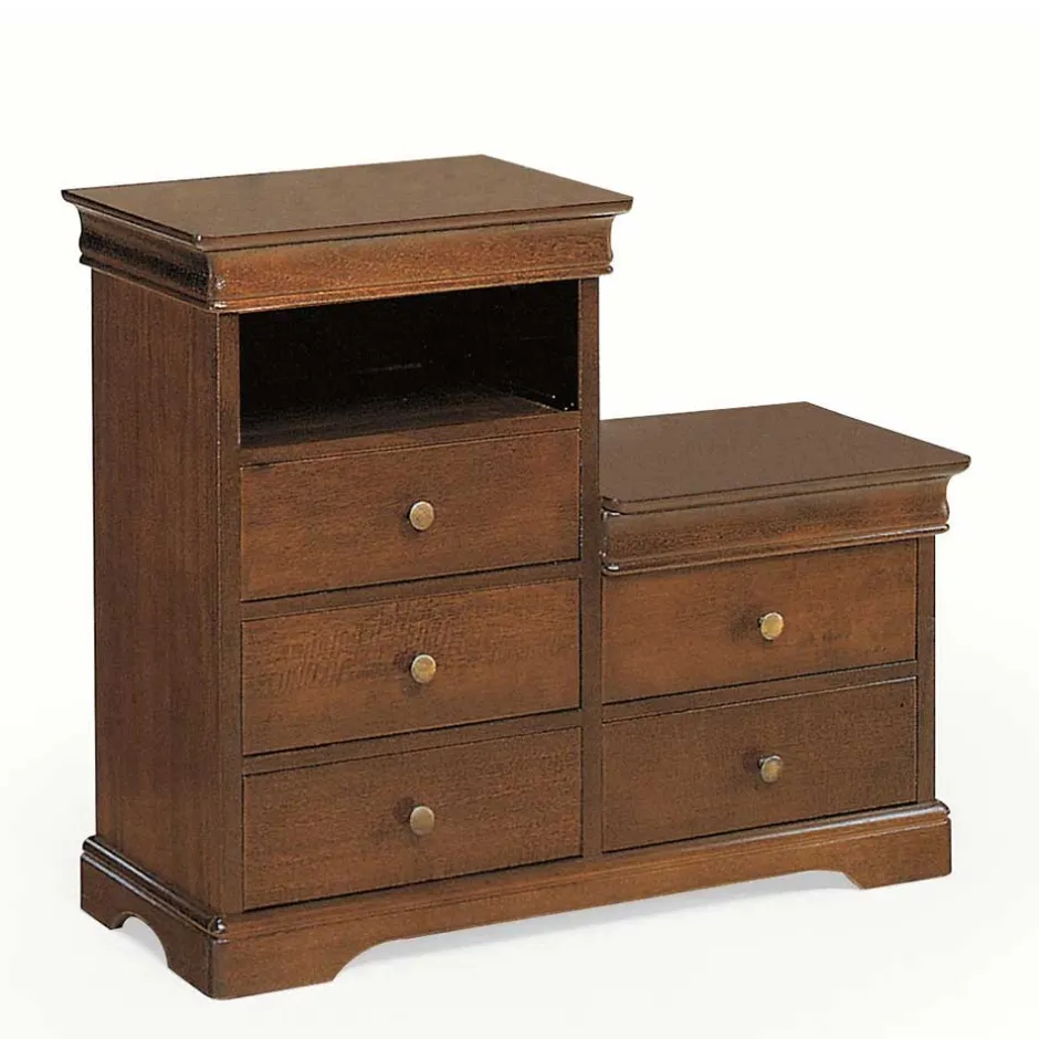 - Fünf geräumige Schubladen mit Holzauszug, zusätzlich zwei versteckte Auszüge oben