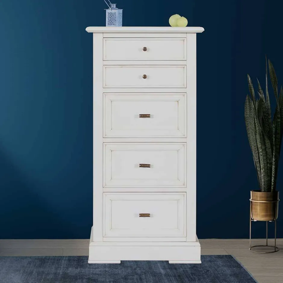 - Stilvoll und elegant präsentiert sich die Kommode in zeitlosem Antikweiß