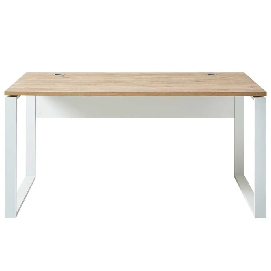 - Tendiger Schreibtisch in Weiß und Wildeichefarben